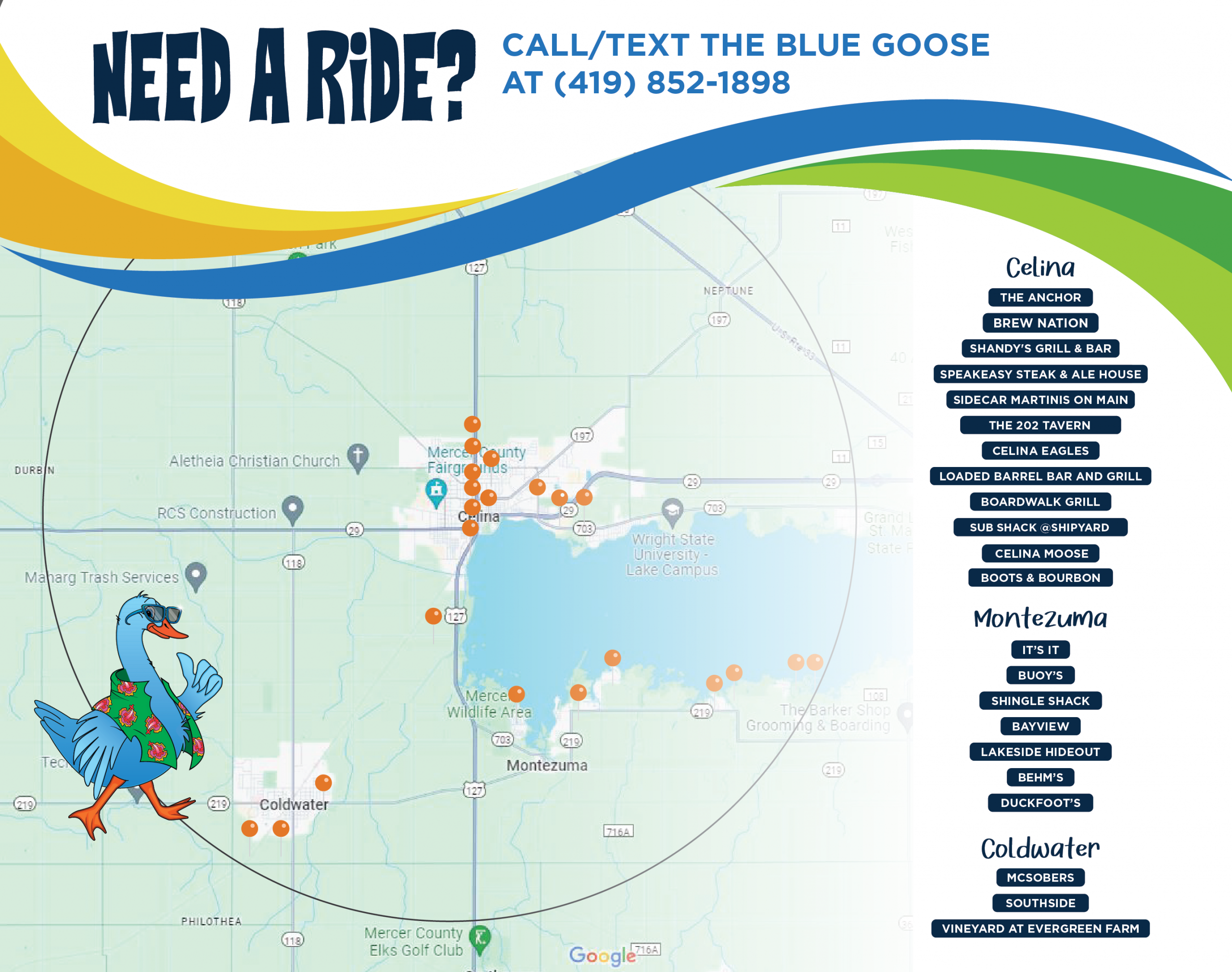 - The Blue Goose can go anywhere in the service area for $10 per person or $20 unlimited per person for the evening (including to and from a residence). Discounts available for Boardwalk Village guests.